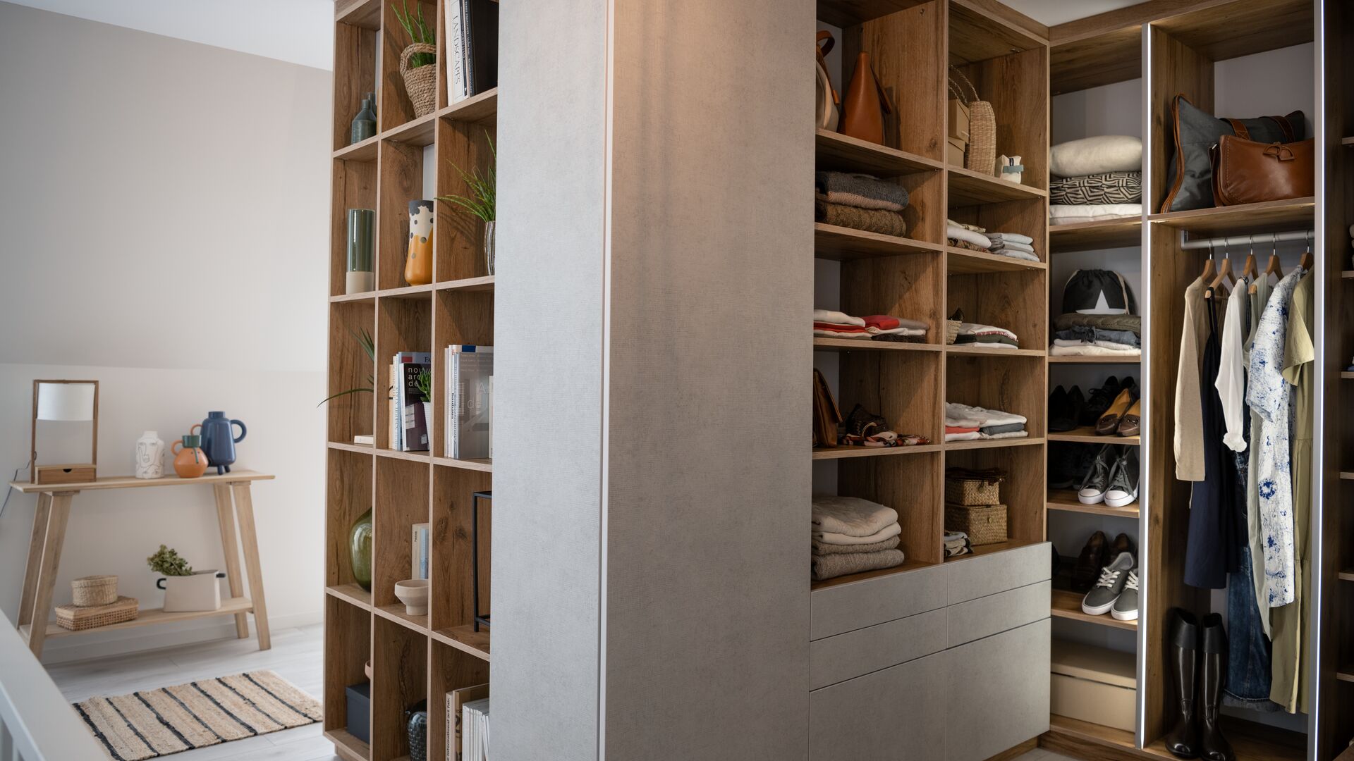 Haben Sie Lust darauf Ihr Projekt für eine Ankleide zu starten? Entdecken Sie unseren 3D Online Konfigurator und testen Sie selbst die vielzähligen Möglichkeiten der individuellen Angebote. Passen Sie Ihre Maße an, die Anzahl der Kleiderstangen und Böden, den Türtyp… Selbst die Farbe Ihrer Möbel, Wände und Böden kann ganz leicht passend dazu gestaltet werden!