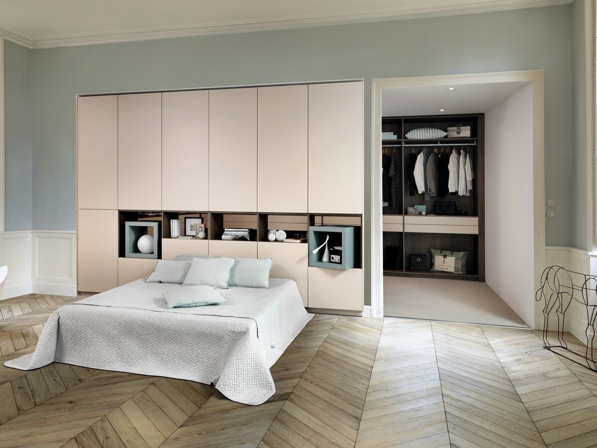 In diesem schönen Elternschlafzimmer mit Ankleide, in dem Funktionalität auf Ästhetik trifft, sien Sie bei Schmidt - mit Preisen, die zu unseren Möbeln passen: in Ihren Maßen. Das Wesentliche ist nicht sichtbar, Schubkästen millimetergenau, perfekt integrierte Möbel ohne Fronten, gut geölte Mechanismen und Beschläge… Hier erfreuen Accessoires das Auge: Stauraumnischen, unauffällige und funktionelle Wäschekörbe, Halter für Schuhe, Krawatten und Schmuck… in Farben, die Ihre Persönlichkeit widerspiegeln und die Sie aus unseren Nuancen wählen können. Maßanfertigungen sind definitiv kein Luxus mehr!